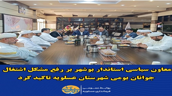 معاون سیاسی استاندار بوشهر بر رفع مشکل اشتغال جوانان بومی شهرستان عسلویه تاکید کرد