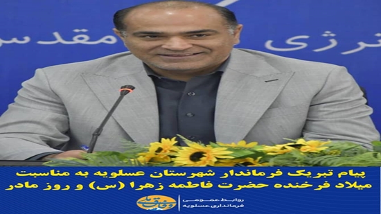 ����فرماندار شهرستان عسلویه با صدور پیامی به مناسبت میلاد فرخنده حضرت فاطمه زهرا (س)، ضمن گرامیداشت هفته بزرگداشت مقام زن و مادر؛ این روز را به‌تمامی بانوان فداکار و سخت‌کوش تبریک و تهنیت گفت.
