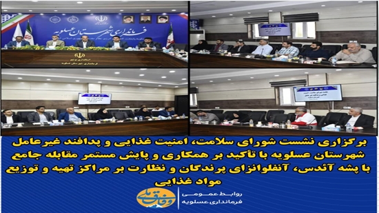 برگزاری نشست شورای سلامت، امنیت غذایی و پدافند غیرعامل شهرستان عسلویه با تأکید بر همکاری و پایش مستمر مقابله جامع با پشه آئدس، آنفلوانزای پرندگان و نظارت بر مراکز تهیه و توزیع مواد غذایی